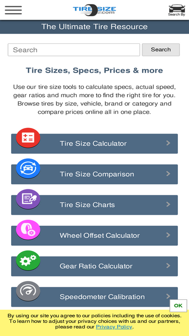 use our tire size tools to calculate specs, speed, gear ratios and more. browse tires by size, vehicle, or brand and compare prices online all in one place.