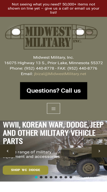 100%Midwest Military, Specializing in WWII Dodge, Jeep and other Military Vehicle Parts and Accessories.