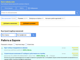 85%Работа в Европе - крупнейшая европейская биржа труда. Вакансии и поиск персонала в Европе.