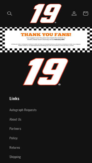 100%Welcome to the official online store for driver of the NASCAR #19 car, Martin Truex Jr.