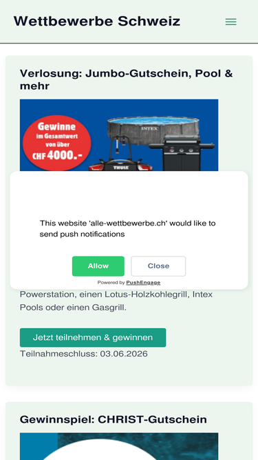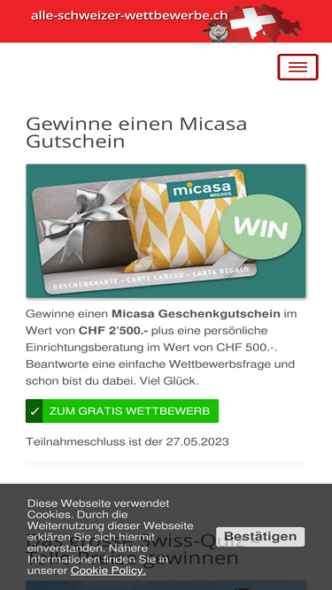 100%Alle gratis Wettbewerbe der Schweiz - aktuell und seriös. Jetzt täglich die Wettbewerbe mitmachen und gewinnen. Viel Glück!