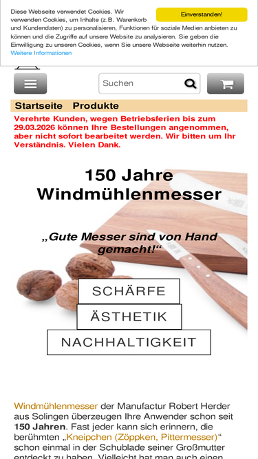 windmühlenmesser-shop für die windmühlenmesser der manufaktur robert herder solingen wo seit über 100 jahren die zeitlosen windmühlenmesser im zeichen der herder windmühle messer hergestellt werden.