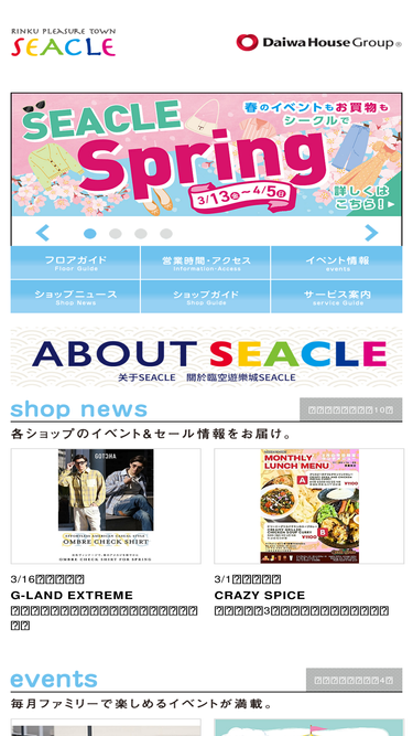 89%おいしい!たのしい!お買い物!家族みんなのプレジャータウン りんくう「シークル」のウェブサイトです。電車でお越しの場合は「りんくうタウン」駅下車にて直結、お車でお越しでカーナビをご利用の場合は「大阪府泉佐野市りんくう往来南3番地」を検索して下さい。
