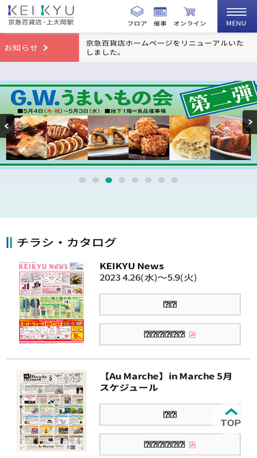 京浜急行線、上大岡駅に隣接したデパート、京急百貨店の公式サイトです