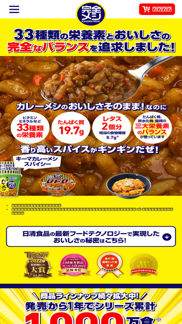92%「完全メシ」は、「日本人の食事摂取基準」で設定された33種類の栄養素とおいしさのバランスを追求したブランドです。