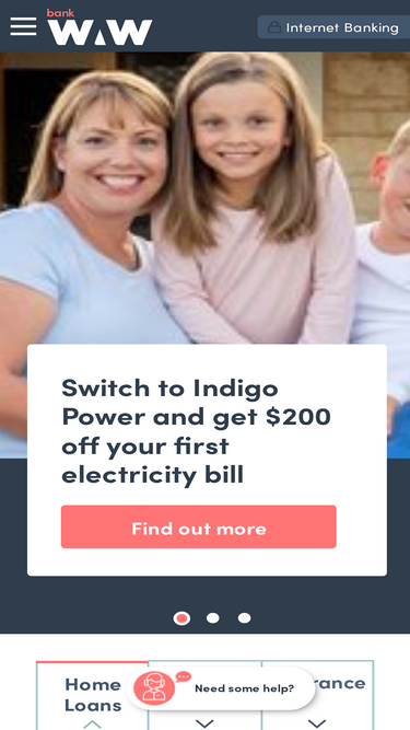 98%BankWAW is an Australian credit union cooperative who put customers and community at the centre. Open an account or apply for a home loan with us today.