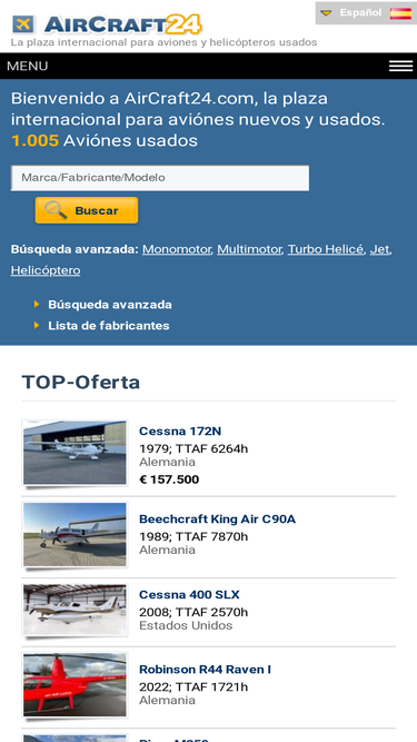 96%negocie aviónes usados en aircraft24.com - la plaza internacional para aviones y helicópteros usados