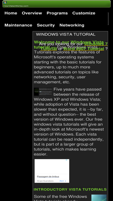 99%windows vista is quickly gaining market shares; in fact, vista is the fastest selling operating system in history. our tutorials will show to use windows vista, a well worth career investment, but also the most rewarding windows experience to date. our windows vista tutorials cover the basics, and extend to more advanced customization and features.