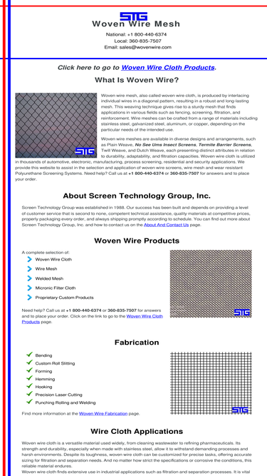 79%wovenwire.com, published by screen technology group, is the largest single source of woven wire cloth, woven wire mesh, and technical reference information