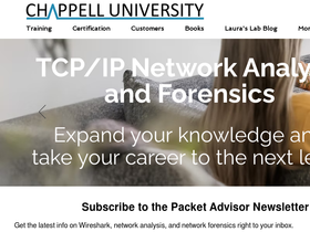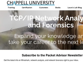 100%industry respected training for troubleshooting, optimization, security, and application analysis with wireshark. welcome to chappell university.