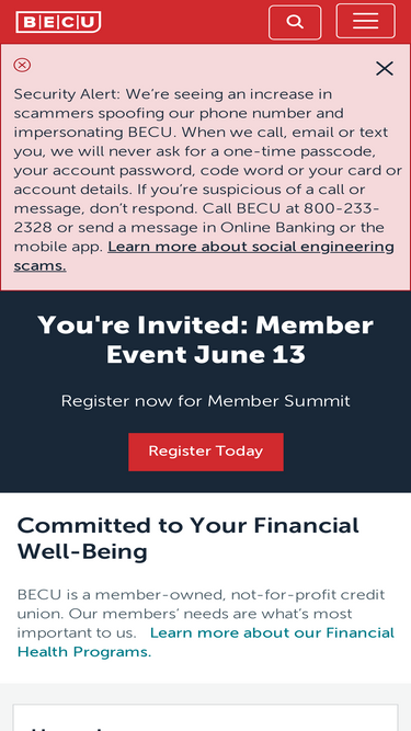 72%BECU is a member-owned, not-for-profit credit union committed to improving the financial well-being of our members and communities.
