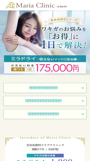 89%マリアクリニックでは、切らないワキガ・多汗症治療「ミラドライ」のモニター募集を行っています。採用された方は通常料金の70%~25%offの料金で、当院のミラドライ治療を受けていただけます。ご希望の方は横浜マリアクリニックへぜひお問い合わせください。