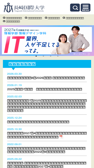 長崎国際大学の公式サイトです。本学の人間社会学部・国際関係学科と社会福祉学科、健康管理学部・健康栄養学科、薬学部・薬学科など、大学全般の情報を随時発信します。