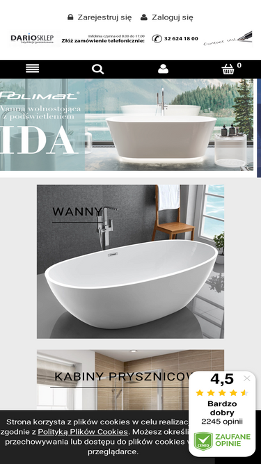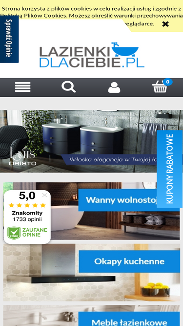 95%Sklep z wyposażeniem łazienek. W ofercie kabiny prysznicowe, wanny, armatura, płytki ceramiczne, ceramika sanitarna. Projektowanie łazienek 3D. Darmowy transport.
