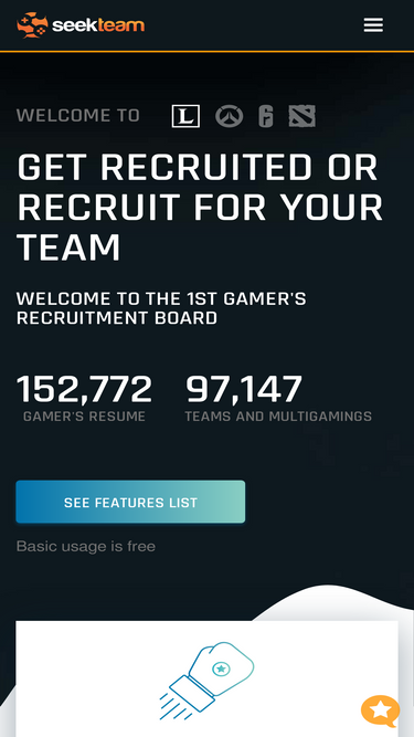 create your gaming resume and contact teams or publish offers for your team and recruit players. pc, ps4, xbox one, switch and mobile. since 2010, seek team is the leader of e-sport recruitment industry.