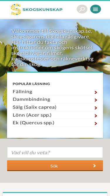 92%Välkommen till Skogskunskap.se, skogsägarens digitala rådgivare. Här hittar du fakta och instruktioner om skogens skötsel, skogsbilvägar, filmer, quiz och räkneverktyg för din skog.