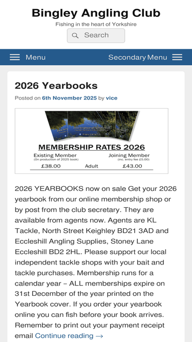 100%website for a coarse fishing club based in bradford west yorks uk.