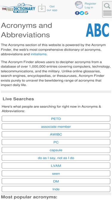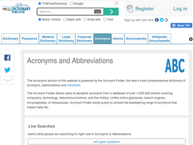 abbreviations - acronyms and initialisms from a database of over 1,000,000 entries covering computers, technology, telecommunications, and the military.