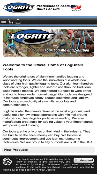 85%logrite.com home page. originators of high quality aluminum handled logging and woodworking tools.