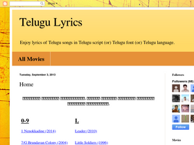 76%Enjoy lyrics of Telugu songs in Telugu script (or) Telugu font (or) Telugu language.