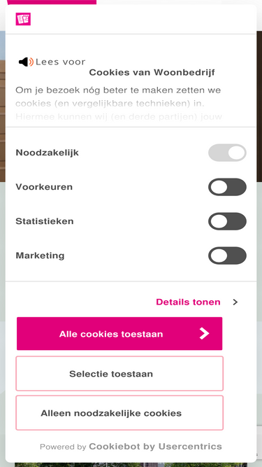 94%Online worden veel woningen aangeboden. Dat kan handig zijn in je zoektocht. Maar let op: er zijn ook partijen die zonder toestemming woningen van Woonbedrijf aanbieden. Soms gaat het zelfs om illegale onderverhuur. Vaak moet je ook nog betalen om het aanbod te kunnen zien of om te mogen reageren. Deze partijen kunnen jou geen woning verhuren en geen huurcontract aanbieden.