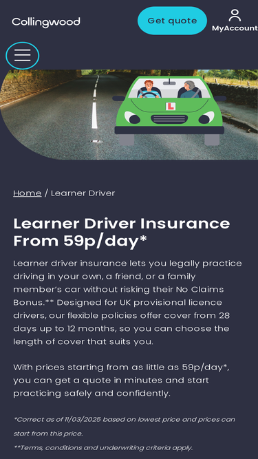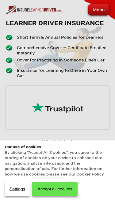 98%Save money on learner drivers insurance and tips on driving lessons and your driving test.