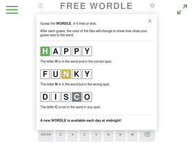 87%O famoso jogo online Wordle sem limite de rodadas. Adivinhe as palavras o quanto quiser e compita com seus amigos!
