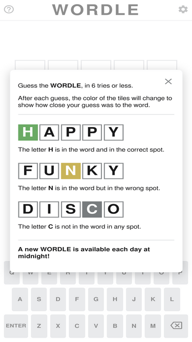 100%Guess the hidden word in 6 tries. A new puzzle is available each day.