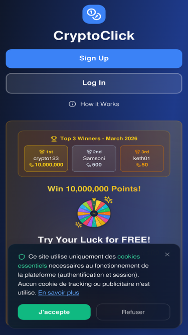 69%Gagnez des cryptomonnaies en cliquant sur des publicités. Participez à la loterie quotidienne et retirez vos gains en USDC.