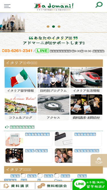 81%【LINE/Skype相談可】イタリア留学無料相談・手続き代行。イタリアのプロフェッショナルである経験豊富なスタッフが親身になってあなたの夢を具体化するサポートを致します。留学出発前のイタリア語レッスンや、留学後の就職サポートも可能。ビザ・滞在許可証・留学保険などのイタリア留学情報や、イタリア生活情報、留学体験談、現地ニュースなど、『あなたのイタリア留学』に役立つ生の情報も日々更新中!
