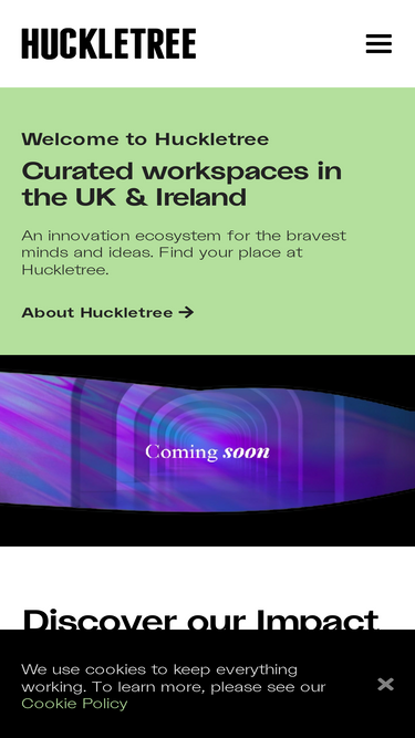 90%The home where businesses thrive. A workspace designed for ambitious businesses and founders. Visit Huckletree to find out more.