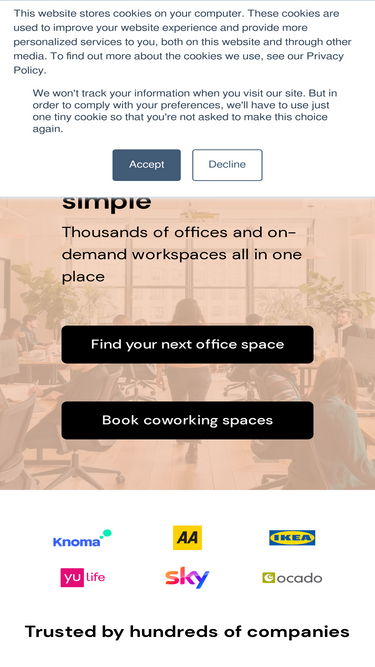 100%Simplify your workspace search. Find serviced or managed offices, and book coworking spaces or meeting rooms on-demand, all in one place.