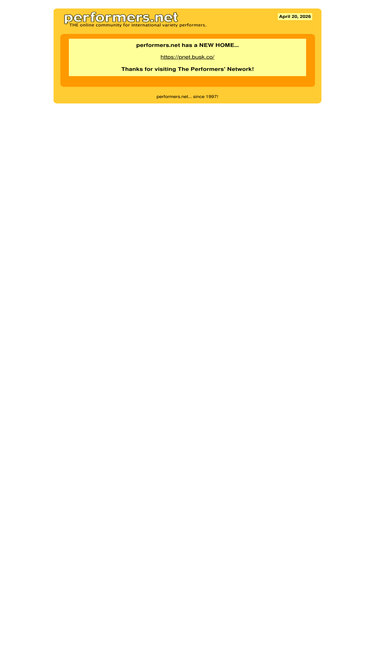 performers.net - the on-line community for international variety performers. information on street performing, street festivals, and other performing resources. web hosting and design services for entertainers. click here!