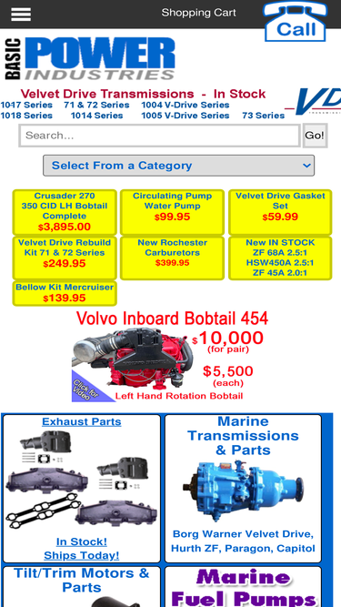 74%ebasicpower.com : Conditions of Use - All Applications Marine Transmissions and Parts - Borg Warner Velvet Drive - ZF Hurth - Paragon Chris Craft Inboards Caterpillar Diesel Inboards Chrysler Inboards Crusader Inboards Cummins Diesel Inboards Detroit Diesel Parts Engines (New & Remanufactured) Indmar Inboards Mercruiser Sterndrives Mercruiser Inboards Marine Power Inboards Outboard Parts OMC Sterndrives OMC Inboards Pleasurecraft (PCM) Inboards Propellers Personal Water Craft T & H Marine Products Used Items Volvo Penta Sterndrives Volvo Penta Diesel Inboards Volvo Penta Inboards Yanmar Diesel Inboards Fishing Tackle Holding Detroit Diesel Diesel Engines Used Engines Decals and Stickers New Transmission Page All Applications Marine Transmissions and Parts | Borg Warner Velvet Drive | ZF Hurth | Paragon Chris Craft Inboards Caterpillar Diesel Inboards Chrysler Inboards Crusader Inboards Cummins Diesel Inboards Detroit Diesel Inboards Engines (Inboard Sterndrive) Fishing Tackle Indmar Inboards Mercruiser Sterndrives Mercruiser Inboards Marine Power Inboards Outboard Parts OMC Sterndrives OMC Inboards Pleasurecraft (PCM) Inboards Propellers Personal Water Craft T & H Marine Products Used Items Volvo Penta Sterndrives Volvo Penta Diesel Inboards Volvo Penta Inboards Yanmar Diesel Inboards Fishing Tackle Stickers / Decals New Detroit Diesel ,Marine Engines, Manifolds, Risers, Starters, Alternators, Sterndrive, Inboard, Outboard, Fishing Tackle, Basic Power