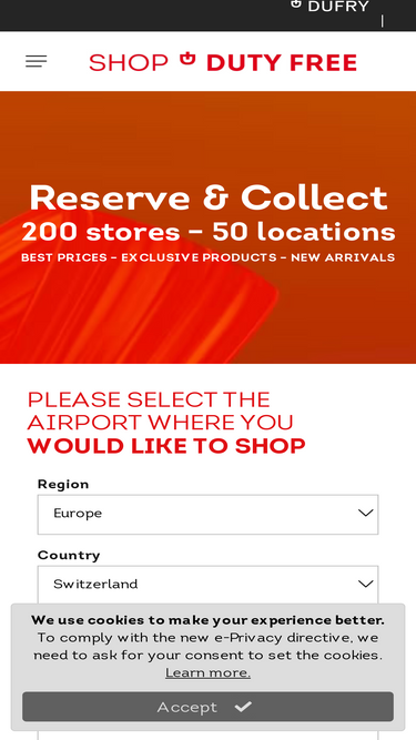 100%duty free stores in and near airports worldwide. duty free shops offering a selection of fragrances, liquor, wine, cosmetics, cigarettes, luxury goods and jewelry.