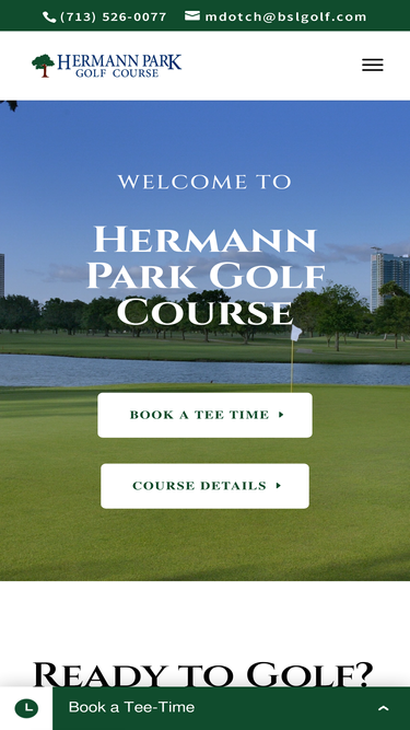 100%Hermann Park Golf Course is open seven days a week to the public and conveniently located for visitors to The Texas Medical Center, The Museum District, Rice University or Downtown Houston, with easy access to every other destination via major city thoroughfares.
