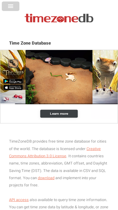 93%Provides world time zone database download and API access.