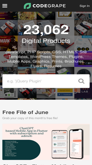 82%CodeGrape is an online marketplace for WordPress Themes, Site Templates, Plugins, PHP Scripts, JavaScript, HTML5, .NET, Mobile Apps, Prints, Graphics and CSS files.