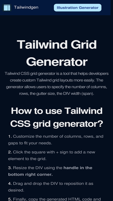 76%tailwind grid generator - a user-friendly tool designed for web developers to effortlessly create customizable tailwind css grids for seamless web development.