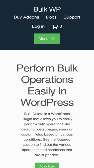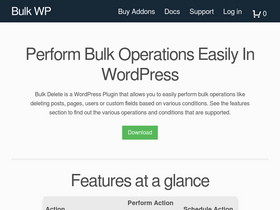 85%This addon adds the ability to delete user meta fields (that are stored in the wp_usermeta table) based on the meta value. The free version of Bulk Delete plugin allows you to delete user meta fields based on meta key alone, but this addon adds the ability to delete the meta fields based on both meta key and value. In addition to that, this addon also allows you to schedule automatic deletion of user meta fields. You can delete user meta fields based on the following filters. Delete all meta fields whose value matches the given value. The following comparison operators are supported. equal to not equal to less than less than or equal to greater than greater than or equal to like not like The meta value to be compared can belong to any of the following data type Char (string) Numeric Decimal Signed Unsigned Date DateTime Time Binary In addition to the above options you can also choose the following filters Restrict meta fields to a specific user role Delete meta fields from the first x number of users Scheduling The meta fields can be deleted immediately or can be scheduled for automatic deletion. Screenshots Delete User Meta Shows the different comparison operators Shows the different data types that are available Shows how scheduling can be done Requirements This addon requires at least v5.4 or above of Bulk Delete plugin.