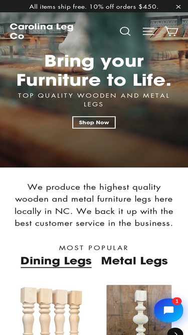 65%Producing the finest wooden & metal table legs for furniture makers across the country. We love DIY & Saturdays in the shop. Made in USA. All items ship free.