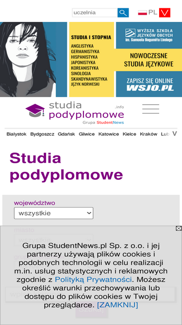 89%jeśli szukasz odpowiedniej możliwości dokształcenia w ramach studiów podyplomowych, w naszej wyszukiwarce znajdziesz wszechstronną ofertę edukacyjną całego kraju.