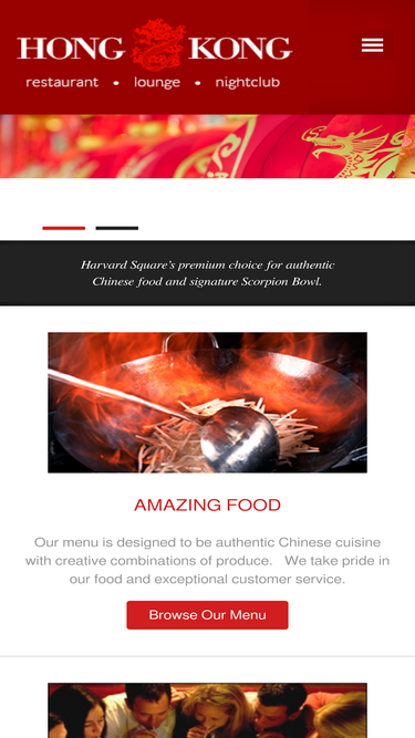 100%AMAZING FOOD Our menu is designed to be authentic Chinese cuisine with creative combinations of produce. We take pride in our food and exceptional customer service. Browse Our Menu SIGNATURE DRINKS Try our wide selection of delightful drinks, amazing cocktails, and great beer & wine selection. Taste our signature Scorpion Bowl – a secret family recipe of alcohol and juices. Drink Selections UPCOMING EVENTS The 65th Anniversary celebration in August will include special events and promotions! Check back often for our upcoming specials and events! Event Calendar FEATURED EVENT Celebrating 68 Years as Hong Kong Restaurant Celebrate with us as we approach 66 years serving residents and visitors to Harvard Square. Check the events page often as we schedule exciting promotions surrounding this momentous occasion.