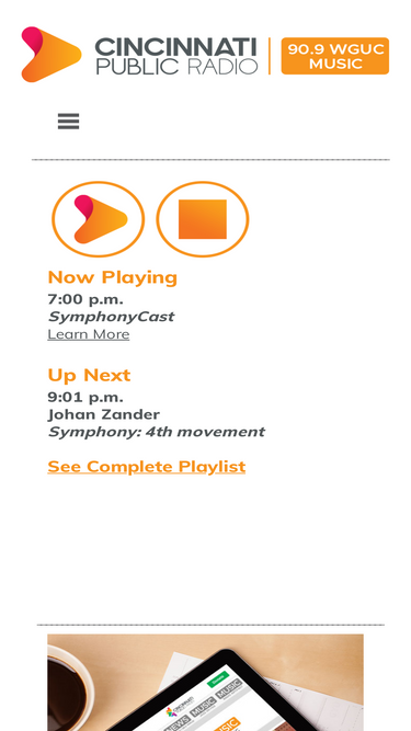 92%Frequently Asked Questions Programming Where can I find the name of a piece of music heard on WGUC Classical? We’ve organized our playlists in a couple of ways for your listening pleasure. First, you can see what’s playing right now. You can also see what we played recently and what’s coming up or conduct a [...]