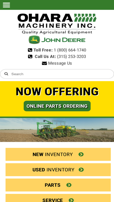 100%O'Hara Machinery Quality Agricultural Equipment is your dealer for Construction Equipment,John Deere Parts,Services,AG management systems,Selling New and Used equipment in Auburn,NY.Toll Free:800-664-1740 Call Us At:315-253-3203