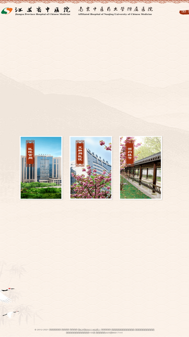 60%江苏省中医院(南京中医药大学附属医院)创建于1954年10月,为全国首批成立的省级中医医院之一,首任院长叶橘泉为中科院学部委员。 建院70年来,经过几代人的励精图治,辛苦耕耘,坚持以中医为本,突出中医药特色优势,国医大师、名医群体荟萃。为适应社会需求,医院不断提高重危及疑难病症的诊治能力,加强中西医结合工作,综合实力显著增强,学术水平和诊疗能力不断提升,持续保持在全国中医系统的领先地位,现已成为全国著名具有浓厚文化底蕴的大型综合性三级甲等中医院。医院先后荣获“全国省级示范中医院”、“全国卫生系统先进集体”、“全国百佳医院”、“全国医院文化建设先进单位”、“江苏省文明单位标兵”、“全国文明单位”、“全国人文爱心医院”、“全国敬老文明号”、“全国卫生健康系统新冠肺炎疫情防控工作先进集体”等光荣称号。