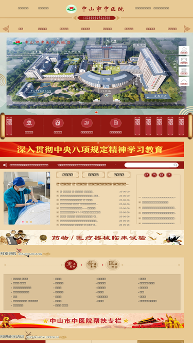 100%首页 中山市中医院(广州中医药大学附属中山中医院),创建于1957年,是一所集医疗、教学、科研、预防保健于一体的综合性中医医院。1993年成为国家首批三级甲等中医院、国家示范中医院,2013年以优异成绩通过三级甲等中医医院复审,是广东省中医名院。