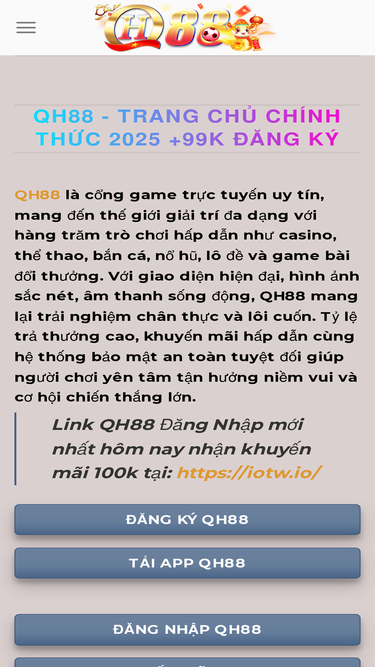 100%QH88 - QH88.com tặng 100k cho thành viên mới tháng 8/2025. Nhà cái uy tín, an toàn, đa dạng trò chơi. Đăng ký ngay và nhận thưởng!