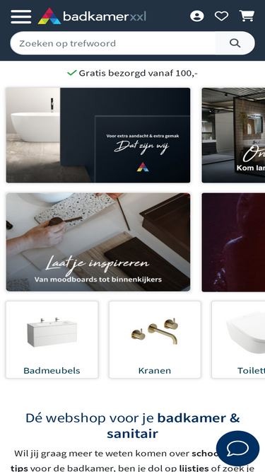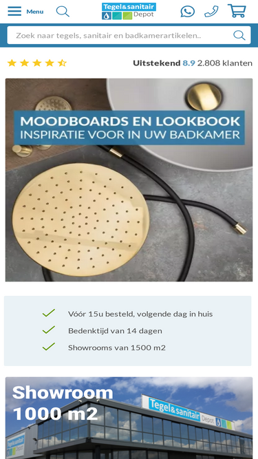 90%bezoek een van de megashowrooms en laat u inspireren door ons badkamer- en tegelassortiment. 98% van ons assortiment is direct uit voorraad leverbaar.