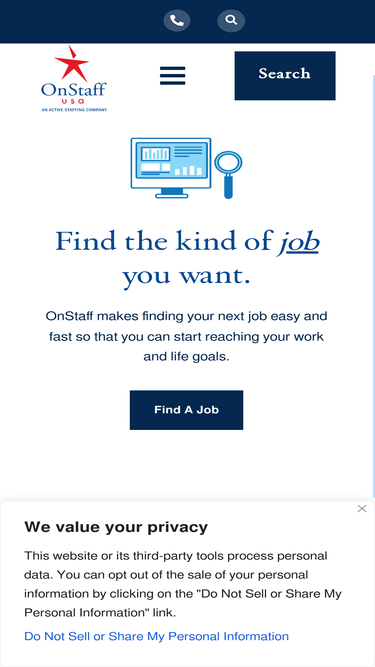 94%Find the kind of job you want.OnStaff makes finding your next job easy and fast so that you can start reaching your work and life goals. Find A Job Find the kind of people you want.OnStaff provides qualified candidates for a virtually unlimited variety of job categories. Hire quality with us. Find Staffing Solutions Uniting